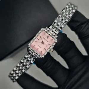 Elegant Silver Pink Dial Watch ( Ladies )