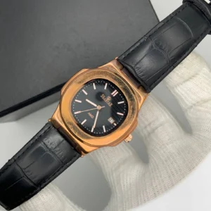 Luxurious Gold Watch with Black Leather Strap ( Black Dial )