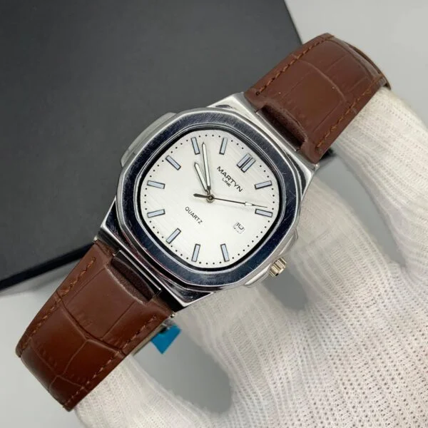 Luxurious Gold Watch with Brown Leather Strap ( White Dial 1)