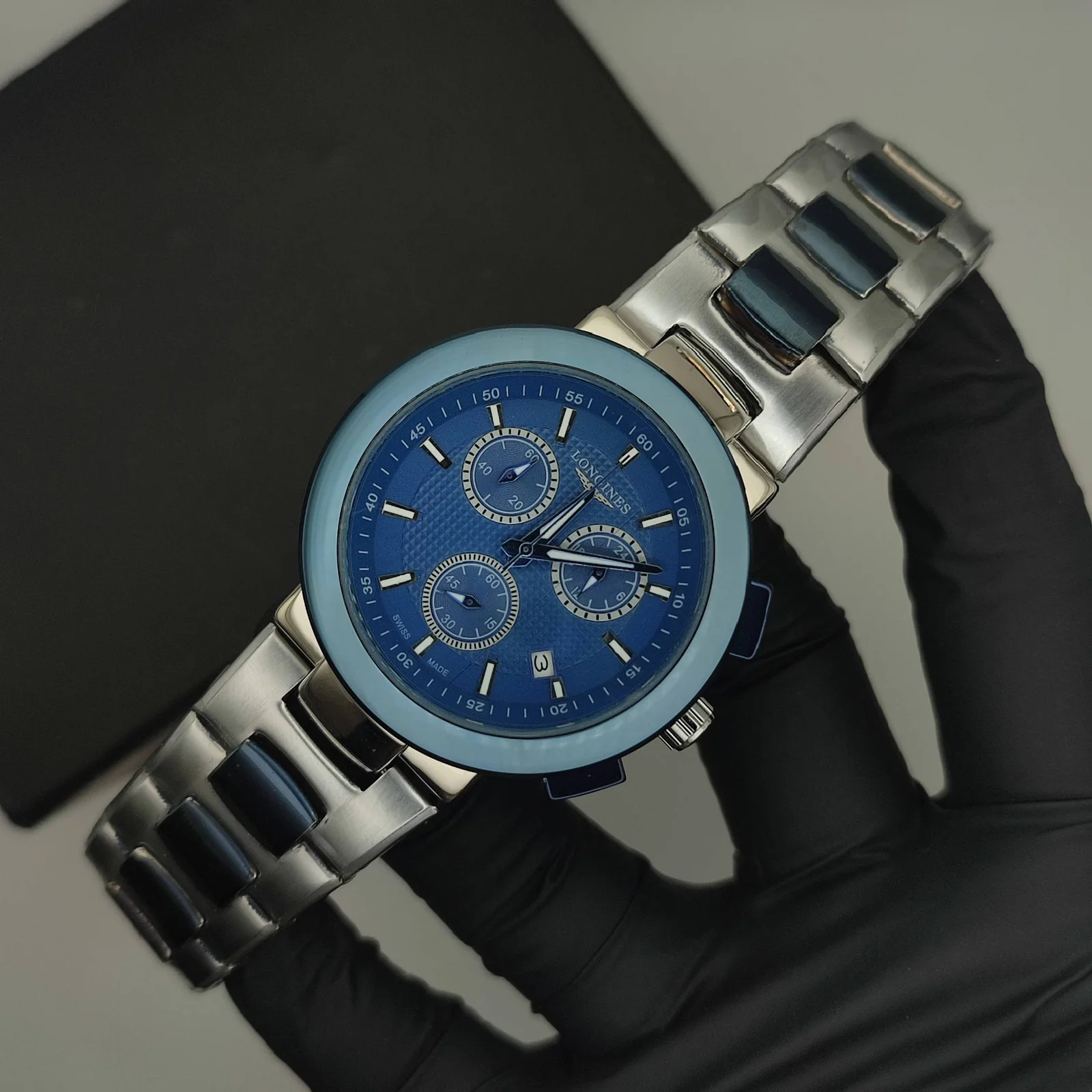 Master Grade Chronograph Watch – Silver Blue Chain (Black Dial)