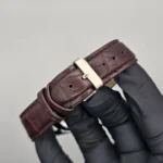- Strap Premium brown leather strap with detailed stitching for added elegance.