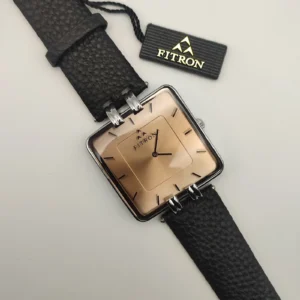Fitron Rose Gold Square Watch with Black Leather Strap